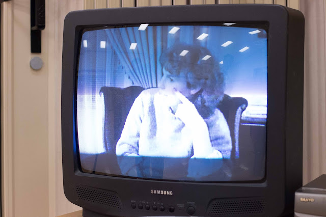 At one point I glanced across the room and saw an eerie close up of my mom's beautiful eyes looking out the old analog television set.